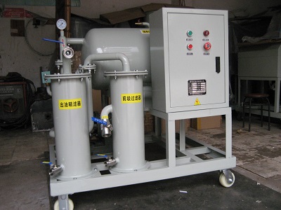 聚結分離式濾油機,以濾油機為代表,其原理是采用聚結、分離式濾芯吸除水份,采用精過濾芯去除雜質,這種濾油設備去除雜質性能較好,去除油中的大量水分效果也不錯,缺點是耗材使用量大,一套濾芯更換下來得上萬,同時去除油中水分的效果只能達到合格的邊緣。濾油效果受油質的溫度影響較大。